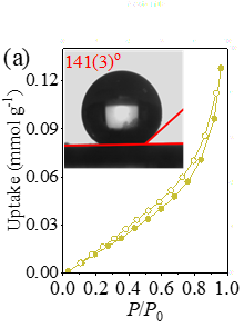 图3. MAF-42的(a)水吸附等温线及接触角和(b)干燥/潮湿条件下的高压C2H4/C2H6穿透曲线