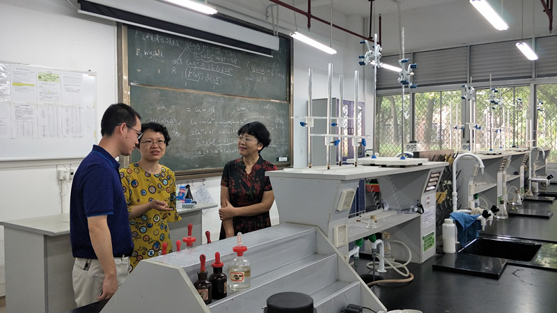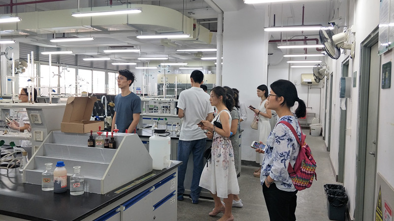 在许先芳和赖瑢老师的亲切陪同下,来访嘉宾依次参观了基础化学实验室、物理化学实验室、仪器分析化学实验室和综合化学实验室。参观过程中,来访嘉宾与各实验室技术人员就实验室日常管理、实验室开放、实验课程设置、通风系统等实验室建设相关的问题进行了细致交流和探讨。