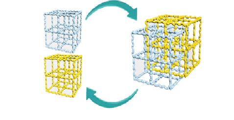 聚合物材料的应用范围非常广泛,通过将不同种类聚合物共混的方式可以实现单一聚合物无法具有的性能,是聚合物材料开发与应用的重要方法。然而多数聚合物间无法实现热力学均匀的混合,往往自发出现相分离,无法达到理想的协同效果。为了克服由简单物理混合带来的缺点,研究人员开发了多种改善相容性的手段,其中互穿网络主要通过引入强迫相容性来抑制相分离。然而由于凝胶化过程的不可控性,现有的聚合物互穿网络均无法达到理想状态下的分子层次互穿,最终材料内部仍不可避免地出现微相分离结构。