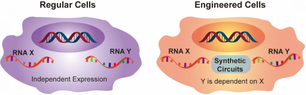 图1、人为构建内源基因调控回路的概念图。