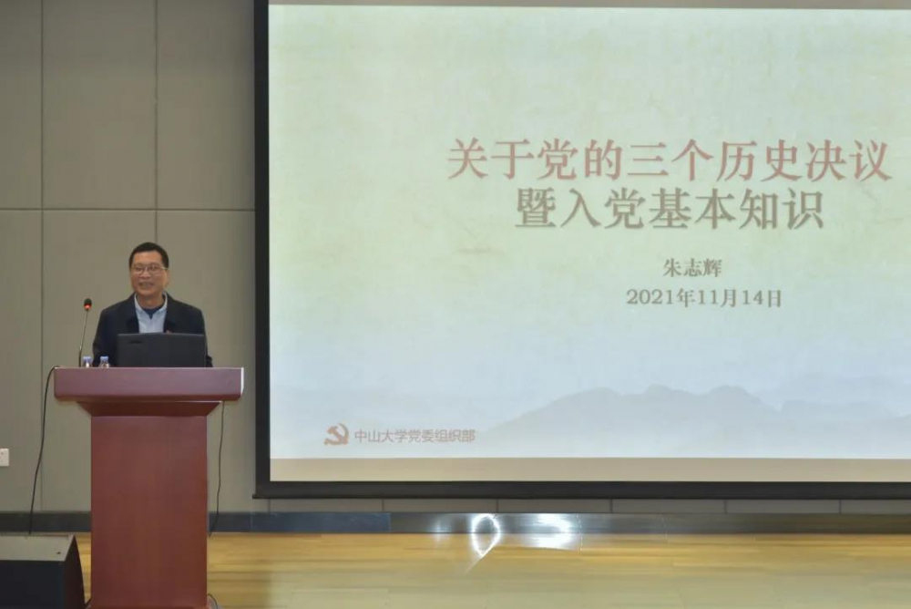 开班仪式后,我院特邀中山大学党委组织部的专职组织员朱志辉老师为学员做第一次集中学习辅导。朱老师从党的十九届六中全会切入,讲解党的三次历史决议,为学员们理解党的三次历史决议进行了深入辅导。朱志辉老师同时强调入党基础知识的重要性,思想入党、遵守党章党规等根本性要求不能动摇。在发展党员过程中,支部要起到监督把关的重要作用。个人也要在党的基本理论、党的基本知识、党的基本历史上下功夫。