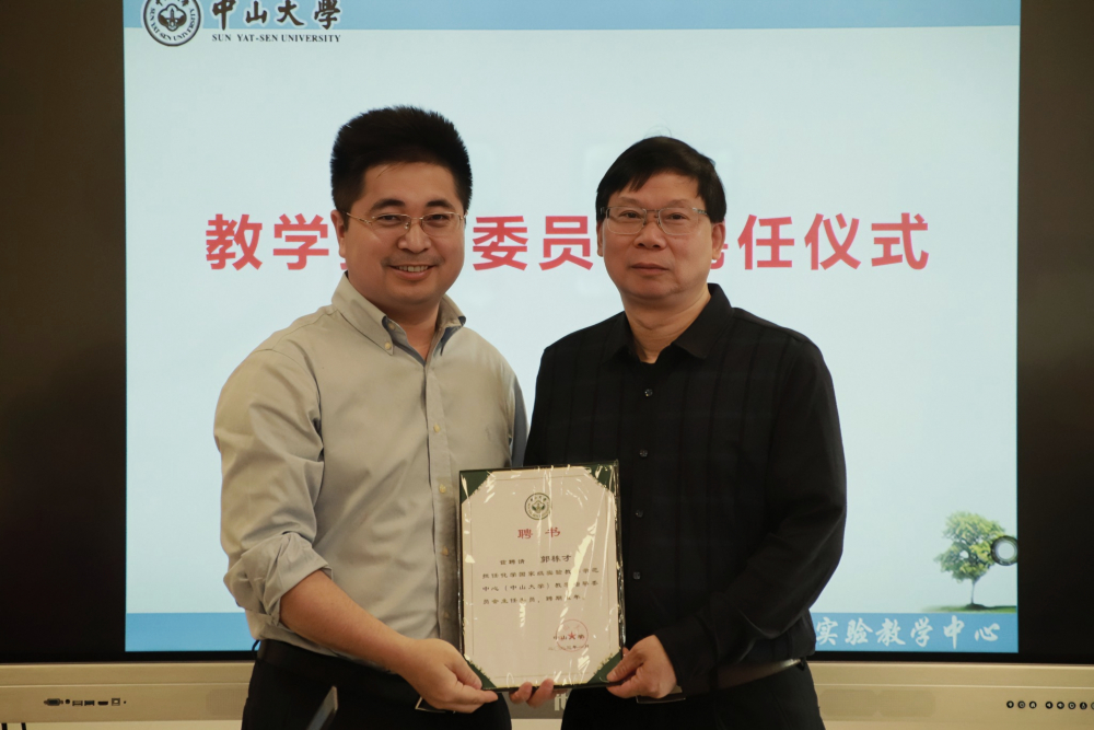 黄林冲处长宣读了“中山大学关于聘任化学国家级实验教学示范中心教学指导委员会委员的通知”,聘任湖南大学郭栋才教授、武汉大学黄驰教授、大连理工大学姜文风教授、四川大学郑成斌教授、复旦大学孙兴文教授、中山大学朱芳教授、李厚金副教授等7人为化学国家级实验教学示范中心(中山大学)教学指导委员会委员。黄林冲处长、苏成勇院长和冯双书记一同为新一届教学指导委员会委员颁发了聘书。