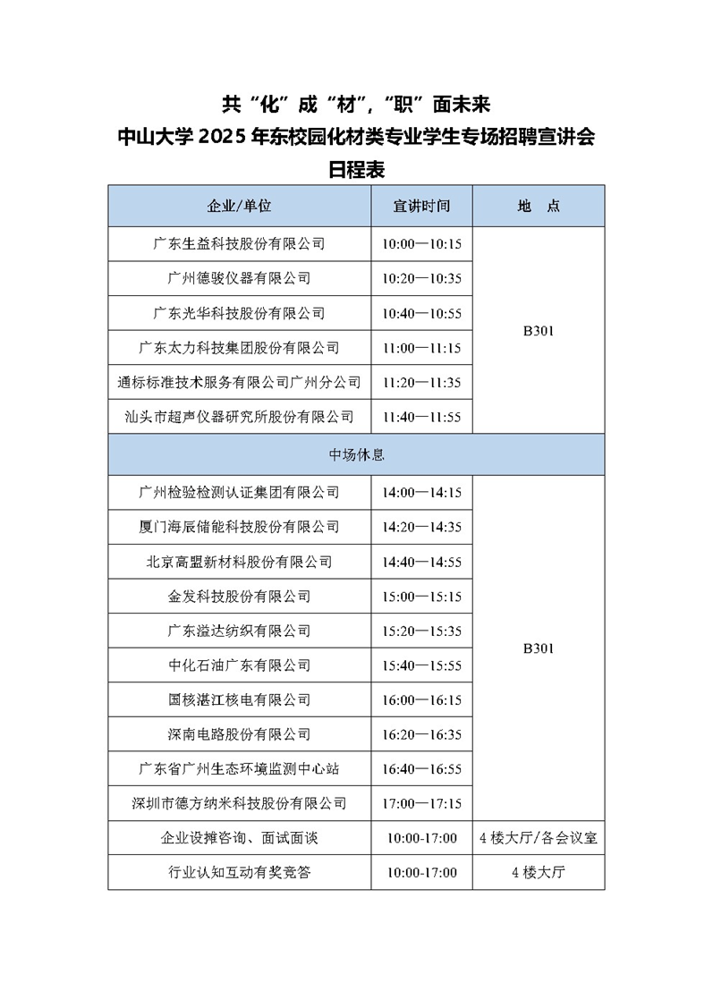 本周五!等你来|中山大学2025年东校园化材类专业学生专场招聘宣讲会活动