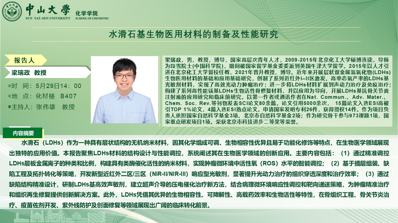 导航痕迹 首页 科学研究 学术报告 2025年5月29日讲座论坛:水滑石基生物医用材料的制备及性能研究 2025年5月29日讲座论坛:水滑石基生物医用材料的制备及性能研究 发布日期:2025-05-28