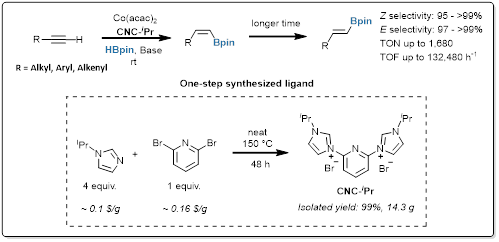 (36) Jinglan Wen, Yahao Huang, Yu Zhang, Hansjörg Grützmacher, Peng Hu*, Cobalt catalyzed practical hydroboration of terminal alkynes with time-dependent stereoselectivity. Nat. Commun. 2024, 15, 2208.