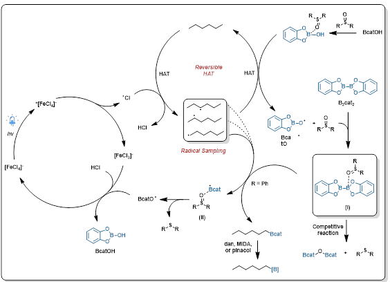 (42)Miao Wang, Yahao Huang*, Peng Hu*, Hydrogen atom transfer-induced selective borylation of C(sp3)–H bonds. Sci Sin Chim, 2024, 54, 1444–1454. (Invited review, 中山大学百年校庆专刊)