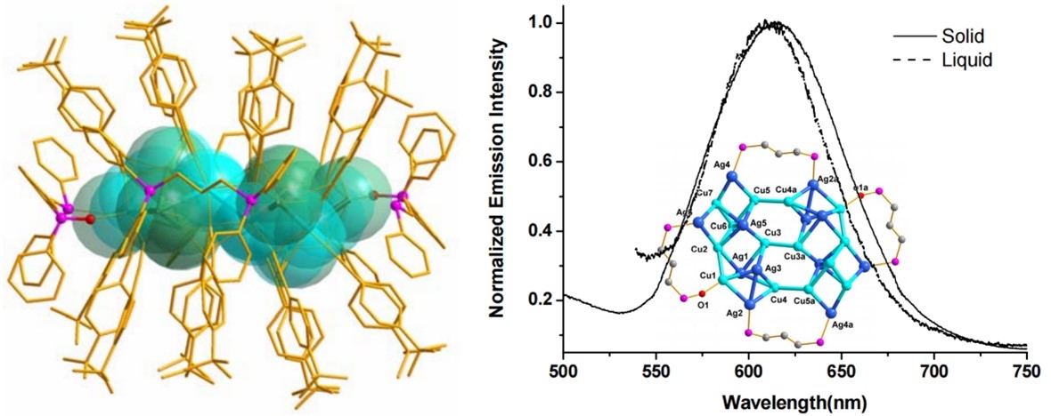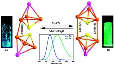 6. Solvent-Induced Intercluster Rearrangements and the Reversible Luminescence Responses in Sulfide Bridged Gold(I)–Silver(I) ClustersLi-Qin Mo, Jian-Hua Jia, Li-Jia Sun, Quan-Ming Wang*. Chem. Commun. 2012, 48, 8691-8693. DOI: 10.1039/C2CC33446A ![]() |