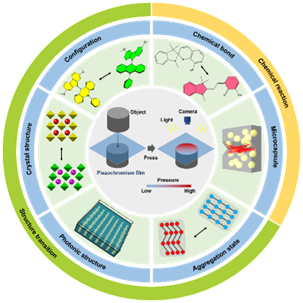 压致变色材料与薄膜。围绕高精尖机械零部件制造与装配过程对界面压力的精准检测,采用有机小分子构型转变、金属有机框架结构转化、压致反应变色以及压致透明等压敏机制,研制新一代高性能压力传感薄膜,实现界面压力分布的高分辨精准成像。