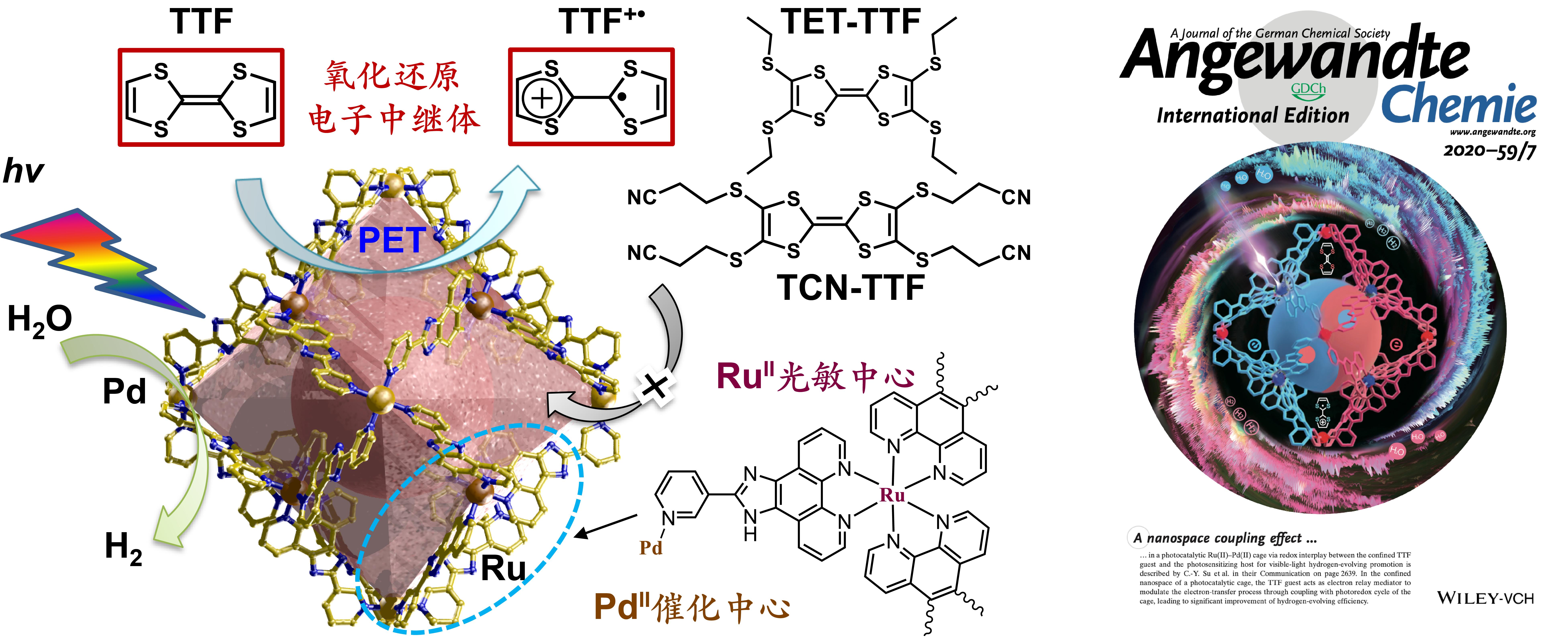 12.K. Wu‡, K. Li‡, S. Chen, Y.-J. Hou, Y.-L. Lu, J.-S. Wang, M.-J. Wei, M. Pan, C.-Y. Su*,The Redox Coupling Effect in a Photocatalytic Ru(II)-Pd(II) Cage with TTF Guest as Electron Relay Mediator for Visible-Light Hydrogen-Evolving Promotion, Angew. Chem. Int. Ed. 2020, 59, 2639–2643.(VIP paper, Inside back cover, Highlighted on Acta Physico-Chimica Sinica, X-mol.com)