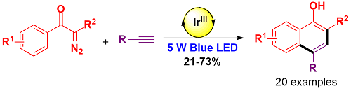 Visible Light-promoted Radical Benzannulation of Diazoketones with Alkynes Leading to Polysubsituted Naphthols.