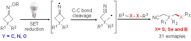 A photocatalytic sp3 C–S, C-Se and C-B bonds formation through C–C bond cleavage of cycloketone oxime esters.