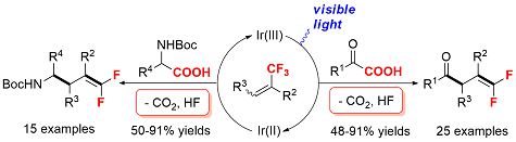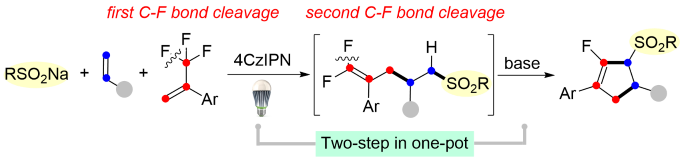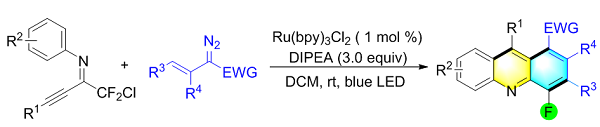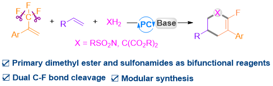 Photocatalyzed/Base-Mediated Defluorinative Three-Component Cascade Cyclization: Access to Monofluorocyclohexenes and 6-Fluoro-1,2,3,4-tetrahydropyridines.