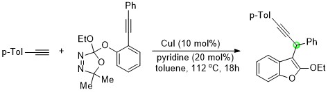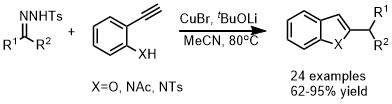 CuBr-catalyzed coupling of N-tosylhydrazone and terminal alkyne: synthesis of benzofuran and indole