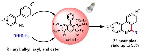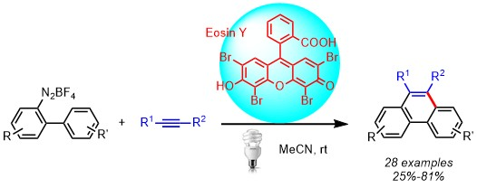 Phenanthrene synthesis by eosin Y-catalyzed, visible- light-induced [4 + 2] benzannulation of biaryl diazonium salts with alkynes.