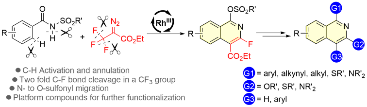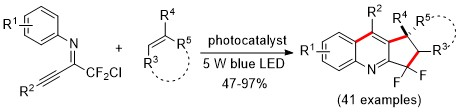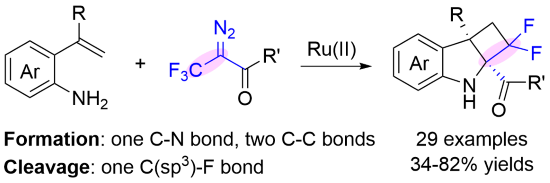 Synthesis of gem-Difluorocyclobutane-Fused Indolines via Ruthenium-Catalyzed Defluorinative Annulation of Trifluoromethyl Carbenoids with 2-Alkenylanilines.