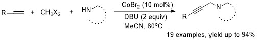 Cobalt-catalyzed alkyne–dihalomethane–amine coupling: an efficient route for propargylamines.