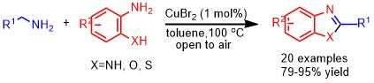 Copper-catalyzed synthesis of benzazoles via aerobic oxidative condensation of o-amino/ mercaptan / hydroxyanilines with benzylamines.