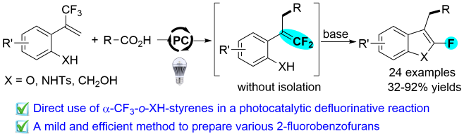 Synthesis of 2-Fluorobenzofuran by Photocatalytic Defluorinative Coupling and 5-endo-trig Cyclization