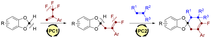 Photoredox Radical/Polar Crossover Enables C-H gem-Difunctionalization of 1,3-Benzodioxoles for the Synthesis of Monofluorocyclohexenes