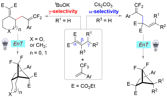 Regioselective Difluoroallylation of Alkylidenemalonates with Trifluoromethyl Alkenes: Synthesis of gem-Difluoro-1,5-Dienes and Their [2 + 2] Photocycloaddition.