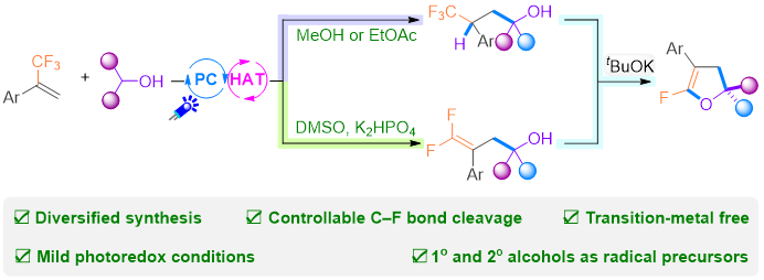 Photocatalytic Reactions of α-CF3 Alkenes with Alcohols by Controllable Non-, Mono- and Dual-Defluorination.