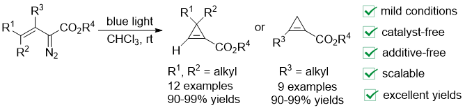 Synthesis and isolation of less stable cyclopropene-1-carboxylates.